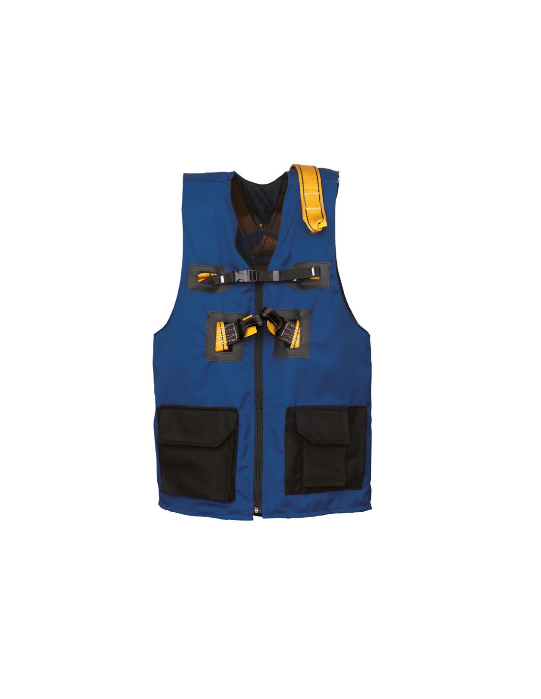 Seguridad integral y organización en un solo equipo: arnés anticaídas Tibet 80071 integrado en chaleco azul con bolsillos extra amplios.