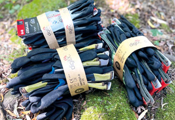 Nuestros guantes de la gama EcoPro están fabricados con materiales reciclados y biodegradables como RPET, spandex reciclado y nylon de base biológica, lo que permite una reducción de hasta 20 gramos de CO₂ por par utilizado.