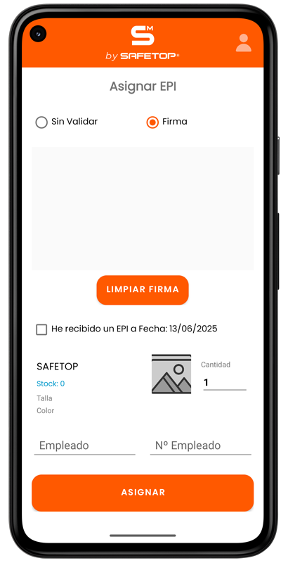 Asigna equipos a cada trabajador con una firma electrónica válida. Queda constancia de la entrega, la fecha, el tipo de EPI entregado y el responsable, todo registrado en el sistema con trazabilidad total.