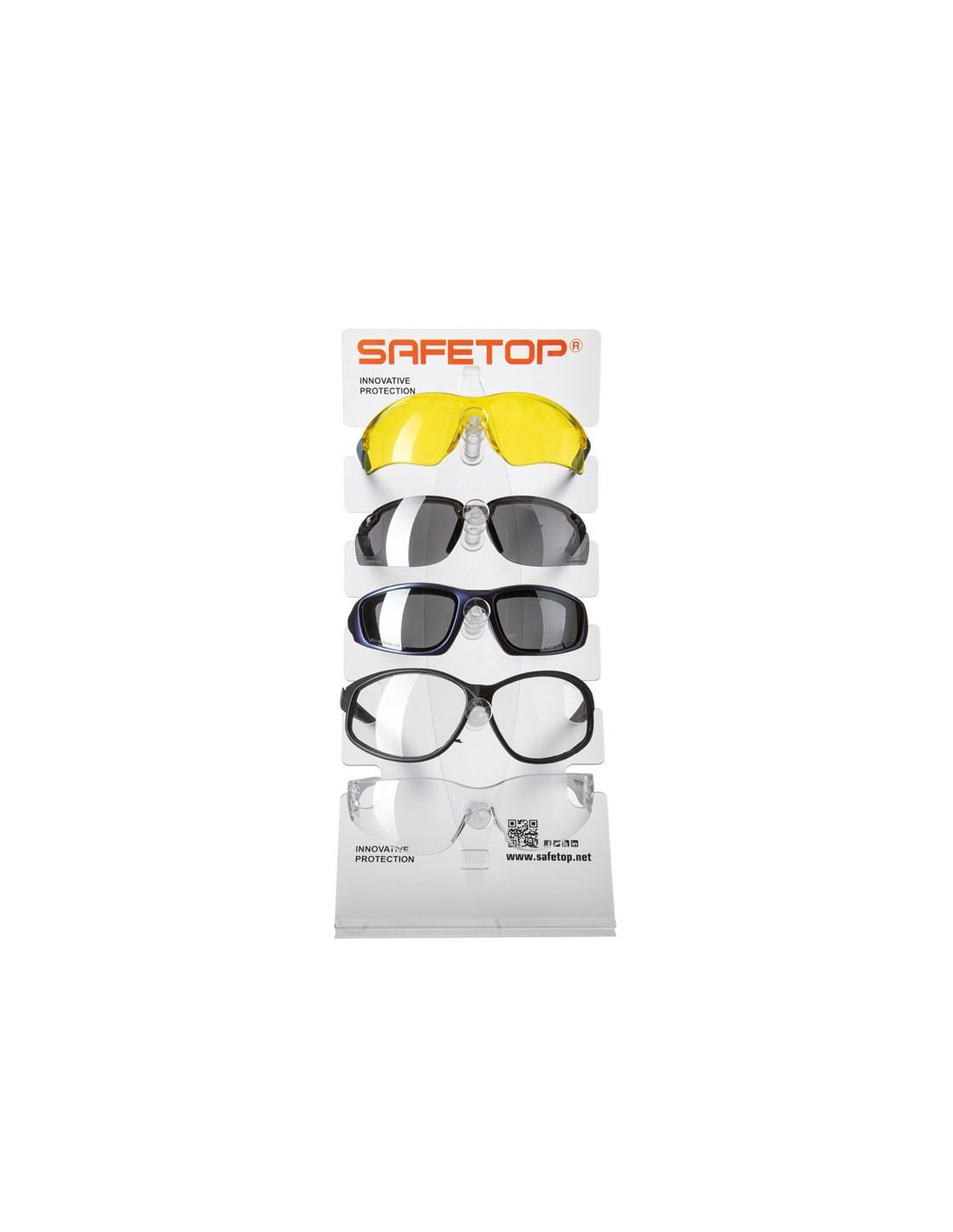 Argumentos de valor: diseño limpio que realza el producto, materiales de calidad que resisten el uso diario y una relación calidad-precio que facilita su implantación en cadena. Compatibilidad garantizada con gafas Safetop® para una presentación coherente y profesional.