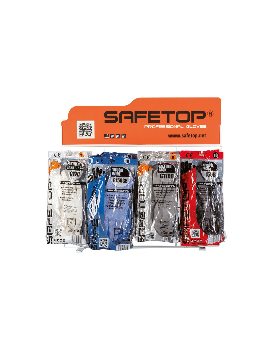EXPOSITOR GUANTES SAFETOP, de sobremesa para 4 modelos