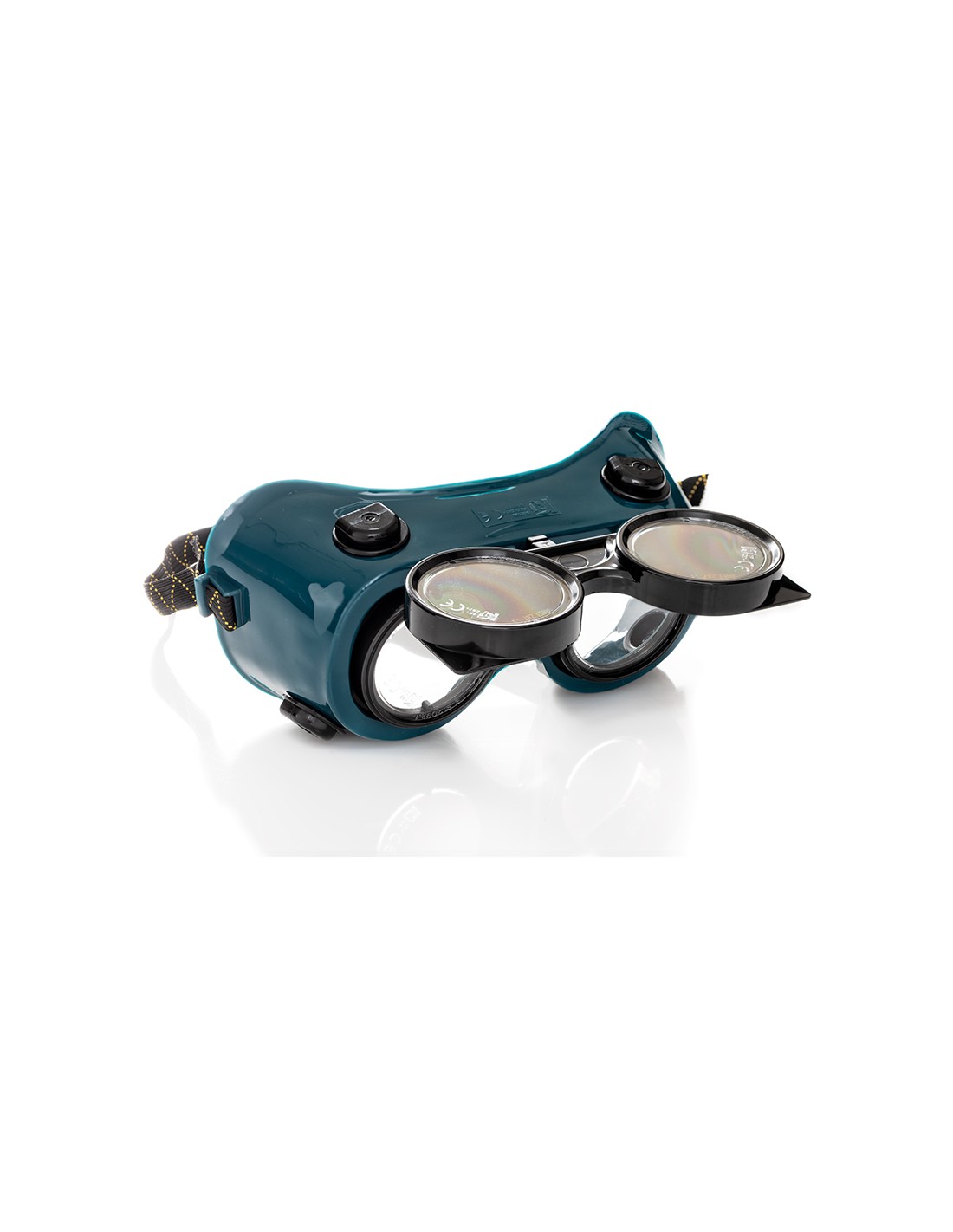 Protección ocular integral con visor abatible y lentes DIN 5 de 50 mm para soldadura ligera y ambientes con partículas.