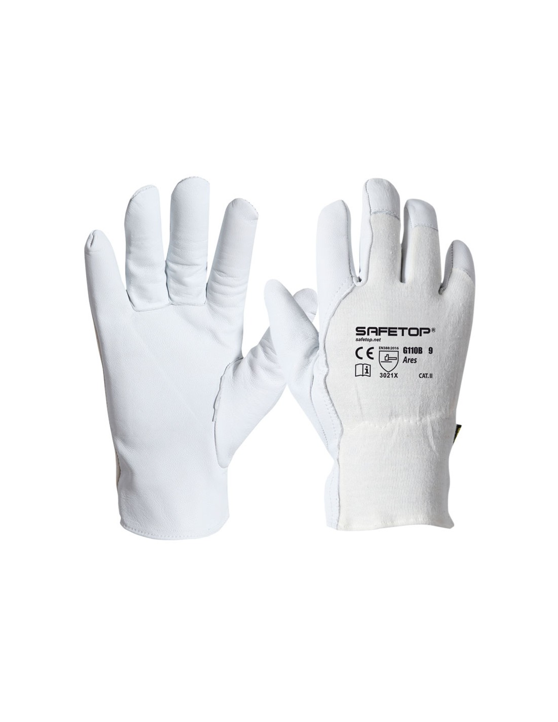 ARES combina la respirabilidad del algodón elástico con la resistencia y el tacto preciso de la piel flor de cabra en palma e índice. El ajuste elástico en la muñeca mantiene el guante firme, evitando deslizamientos y mejorando el control de herramientas. Con un grosor de 0,9 mm, ofrece sensibilidad para operaciones finas sin renunciar a protección en uñeros. Su diseño ergonómico y peso ligero reducen la fatiga y aumentan la productividad, ofreciendo una excelente relación calidad-precio. Recomendado para tareas de agricultura, jardinería y ensamblaje donde se requiere precisión y confort.