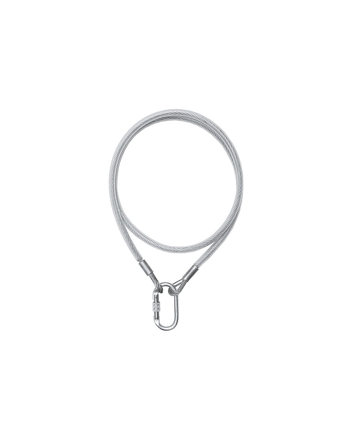 Cable de acero de 8 mm con mosquetón de rosca de 25 kN para una conexión sólida y fiable.