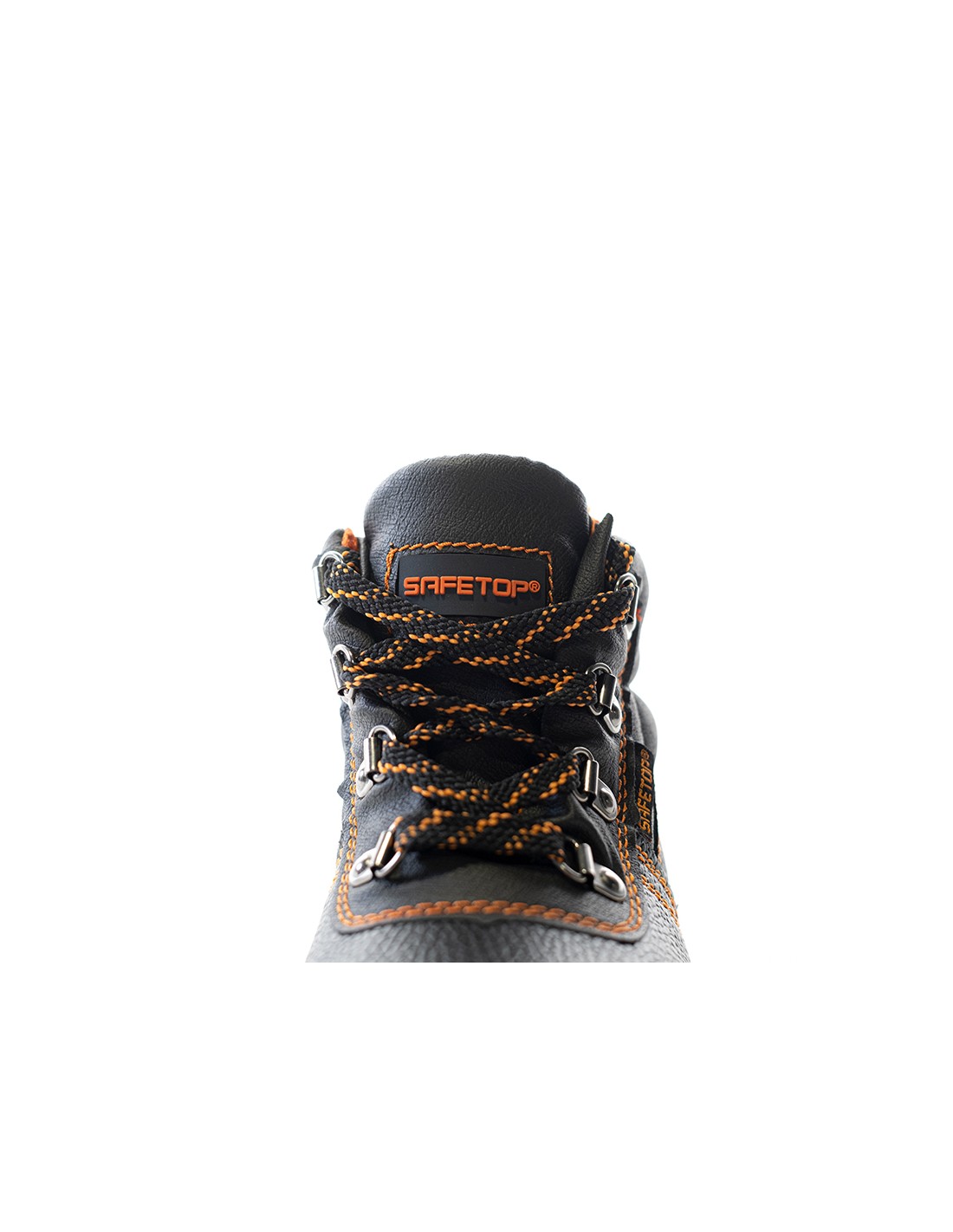· Botte de travail à lacets, fabriquée en cuir de vachette de couleur noire.