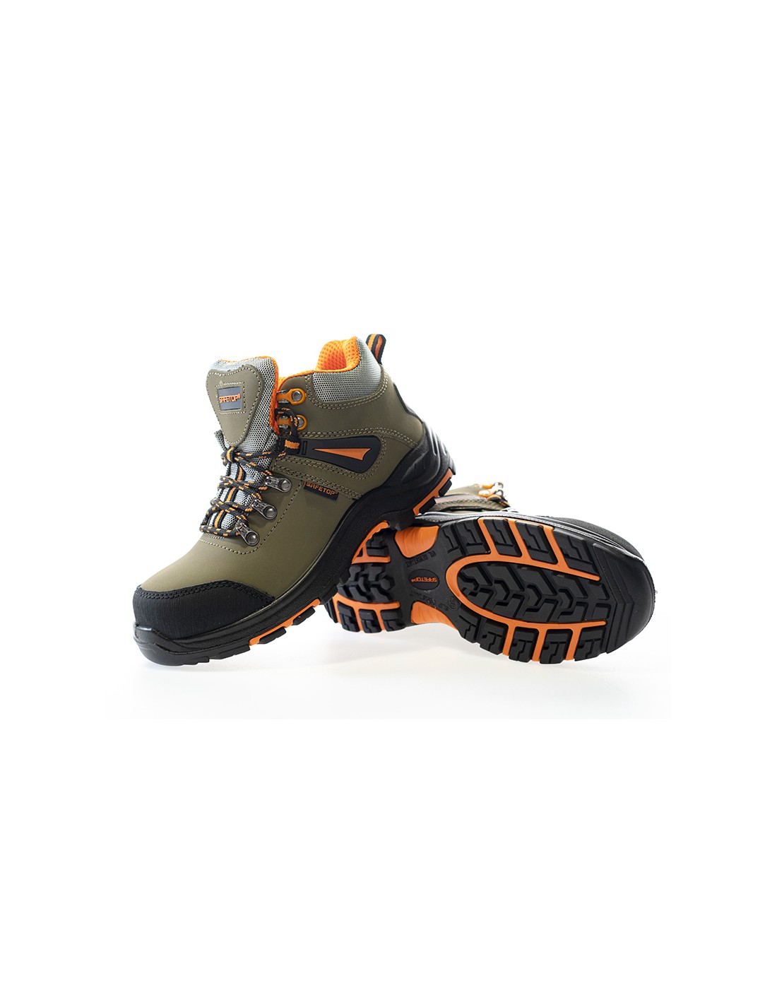 Le nubuck de haute qualité, la doublure 3D et la semelle antibactérienne avec membrane intégrée offrent ergonomie et respirabilité tout au long de la journée. La construction légère et flexible, avec renforcement anti-abrasion, assure durabilité et ajustement confortable dans des environnements exigeants avec eau, huiles et usure intensive.