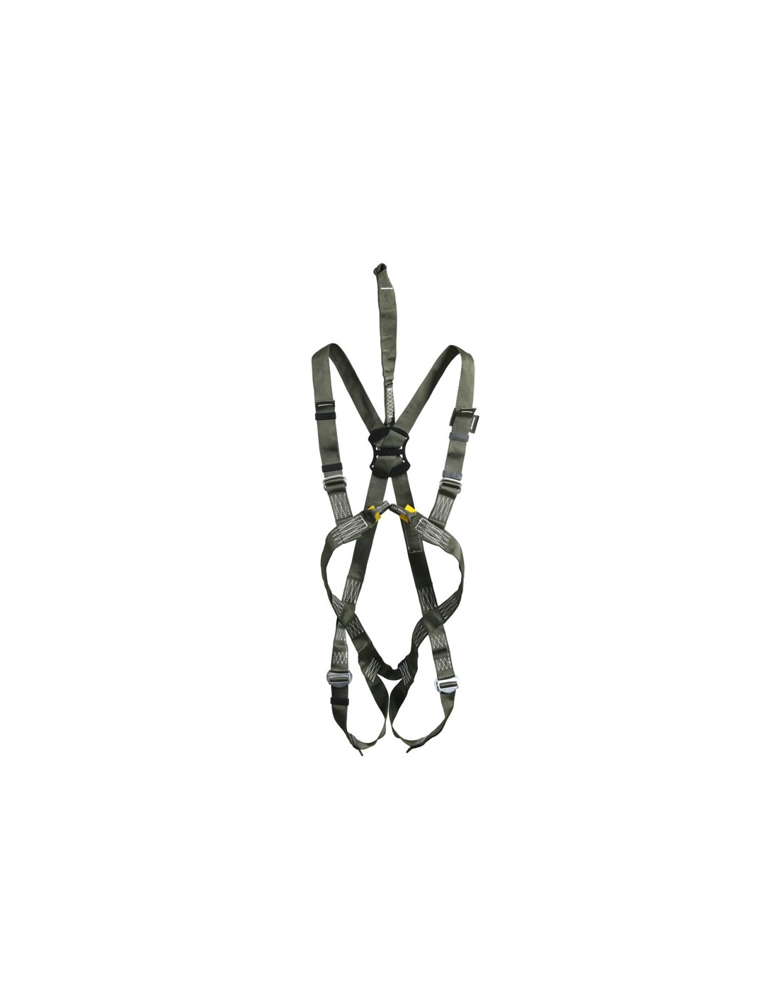 · Un point d'ancrage dorsal avec longe d'extension reliée à un anneau en D, adaptée pour connecter le sous-système de liaison/absorption.
