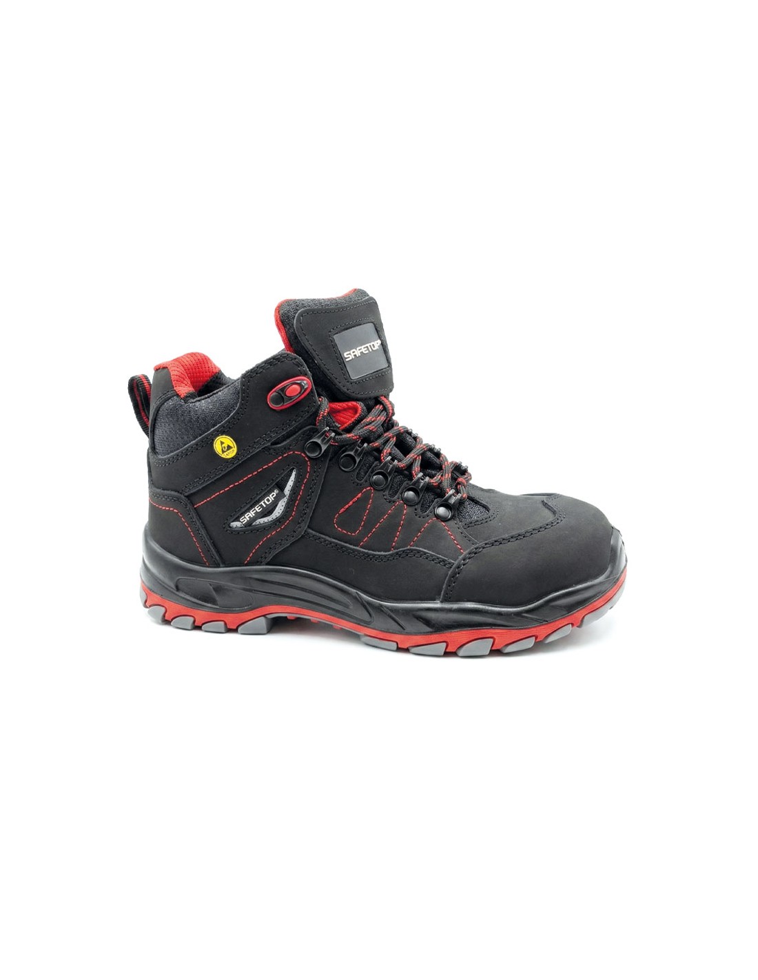 · Botte en matériau nubuck black action avec bandes réfléchissantes de couleur rouge.