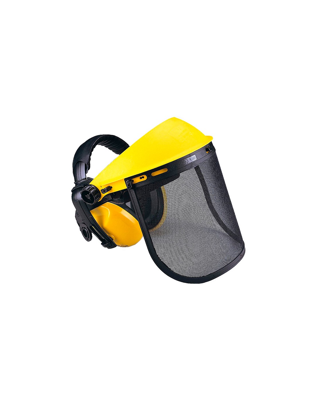 Protection intégrale pour le visage et l'ouïe lors des travaux forestiers, avec visière en maille d'acier et SNR 27,5 dB. Réglage par molette et légèreté pour des journées longues en toute sécurité, ergonomie et visibilité constante.
