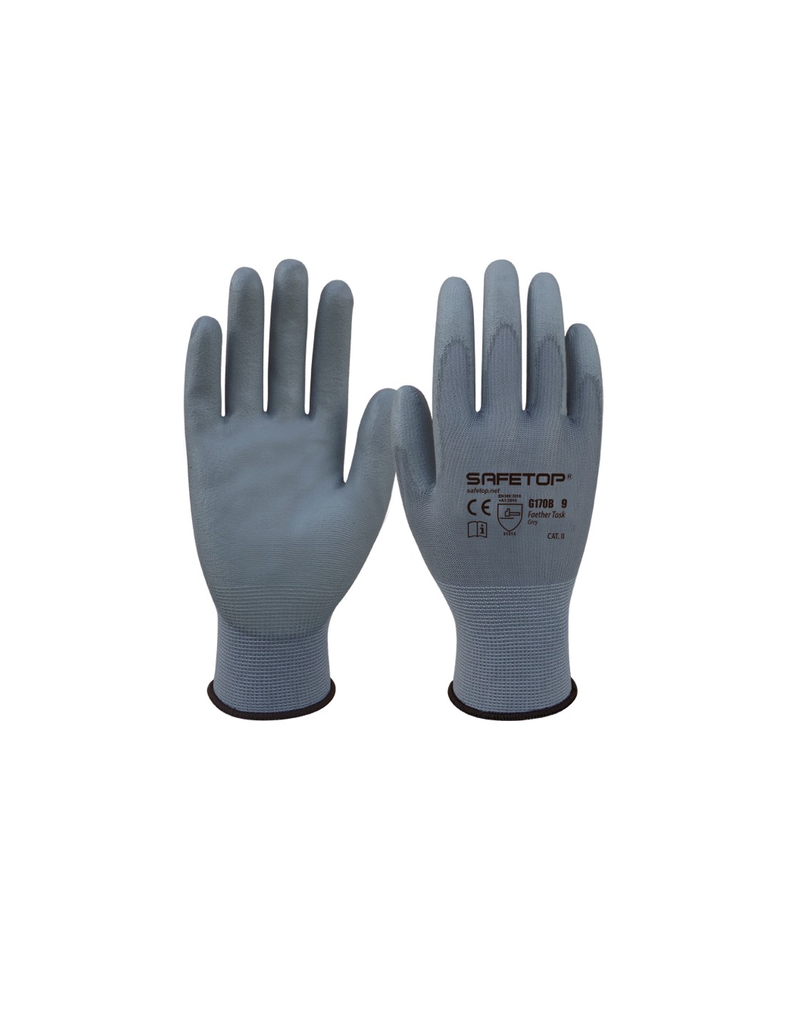 FEATHER TASK gris, PU sur polyester, paquets de **12 paires**