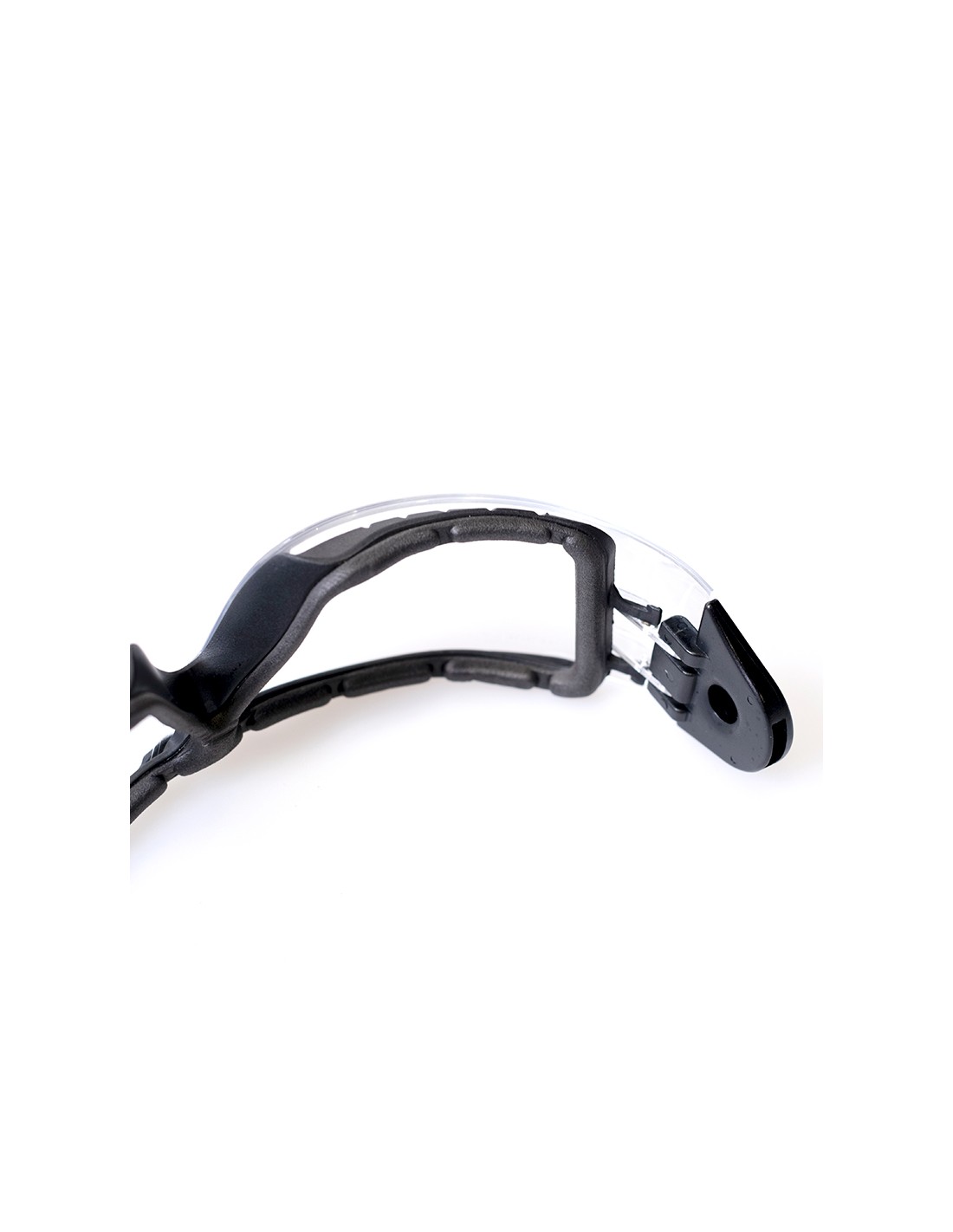 The inner EVA band seals against dust and, along with the interchangeable rigid arm/elastic strap system, allows the glasses to be adapted to each task and morphology. The rugged ends prevent slipping and the height and length adjustments ensure a stable and ergonomic fit.