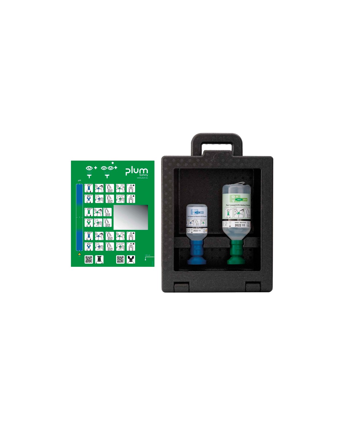 The COMBI BOX is a double wall station designed to act in the critical initial seconds following eye exposure to dust, particles, or chemical agents. Its configuration with two distinct bottles (500 ml saline solution and 200 ml neutral PH) ensures a swift and effective intervention, with intuitive and ergonomic application.