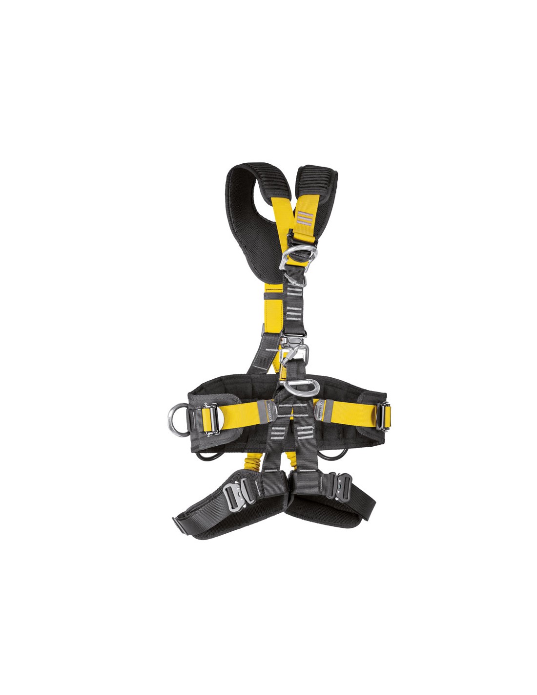 · Padding of the upper straps, belt, and leg loops: maximum comfort.