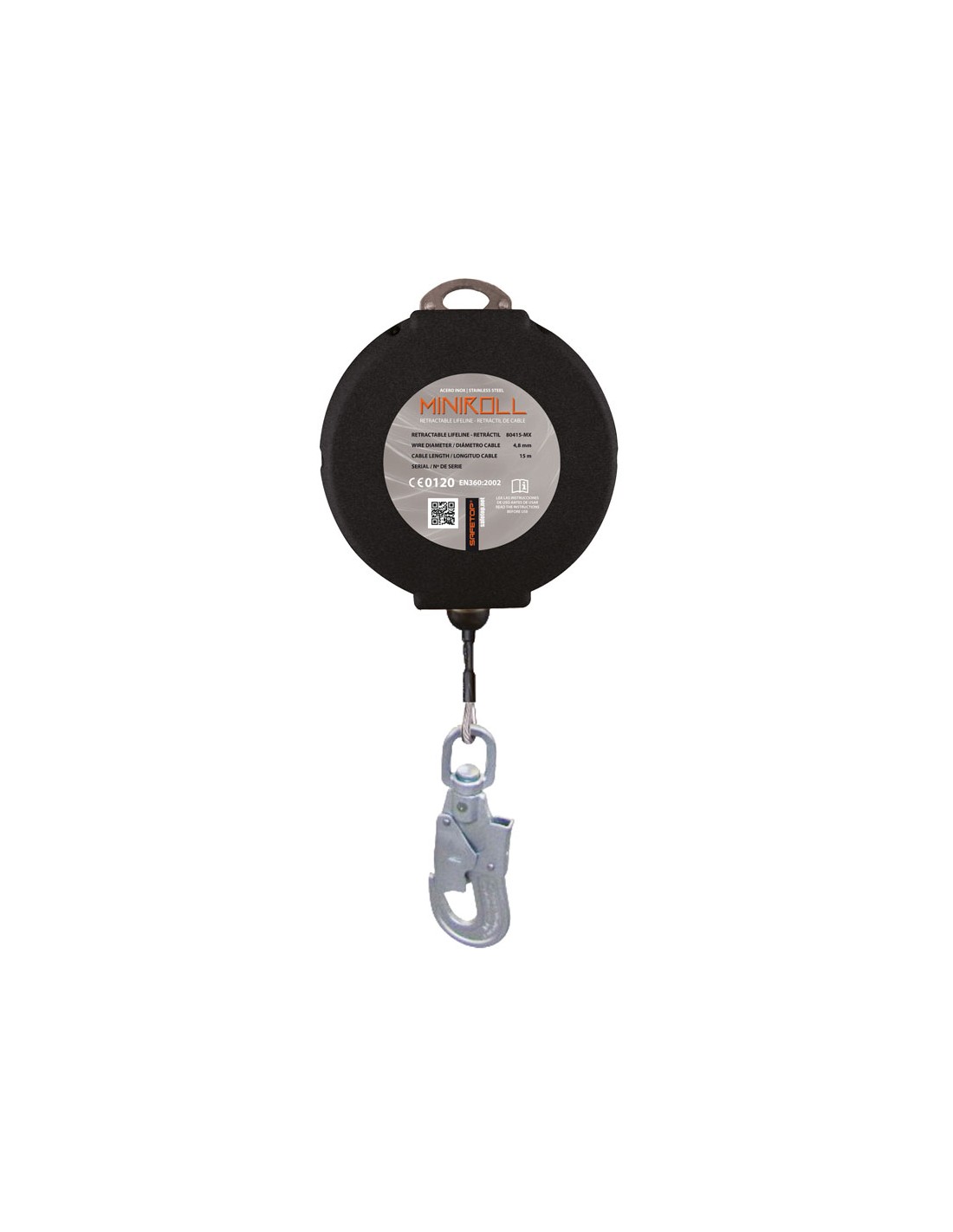 The MINI-ROLL INOX is designed to offer constant and smooth security in vertical work. Its stainless steel cable ensures resistance to corrosion, while the high-resistance thermoplastic housing guarantees a long service life in demanding environments. The rotating carabiner at the lower end prevents cable twists, reducing wear and stops, and the 17 mm upper carabiner facilitates quick and secure connection. With a capacity of 140 kg and a reach of 10 m, it is the compact and efficient solution for professionals who value reliable technology, manufacturing quality, and ergonomic handling.