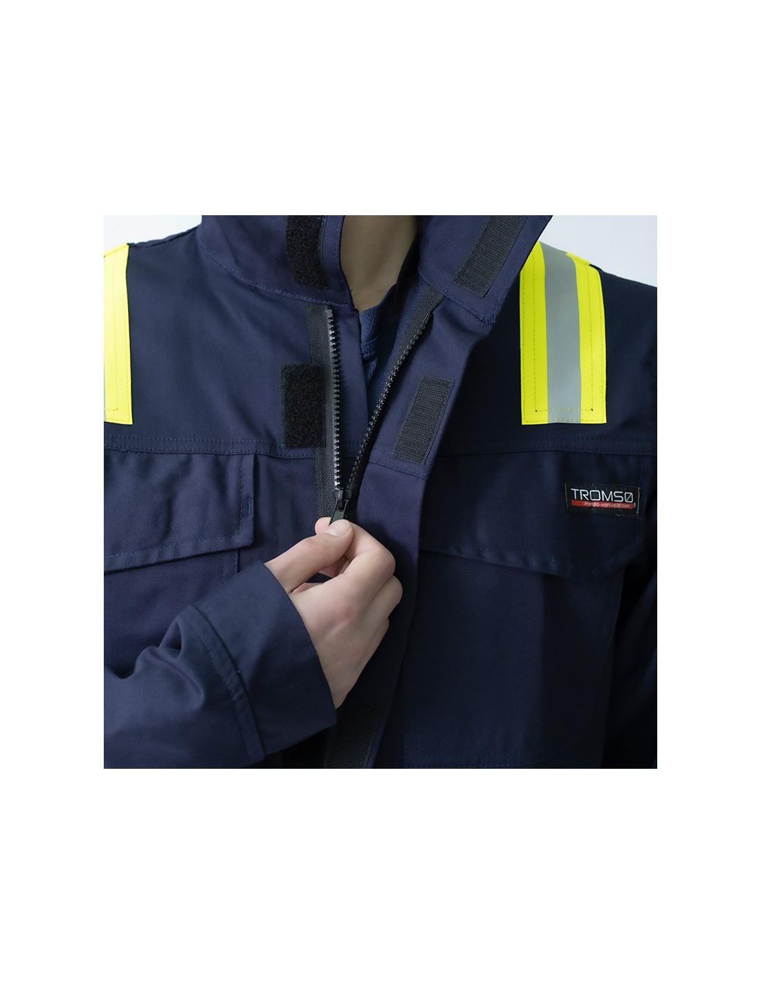 · Front fastening with zip and velcro at the neck.
