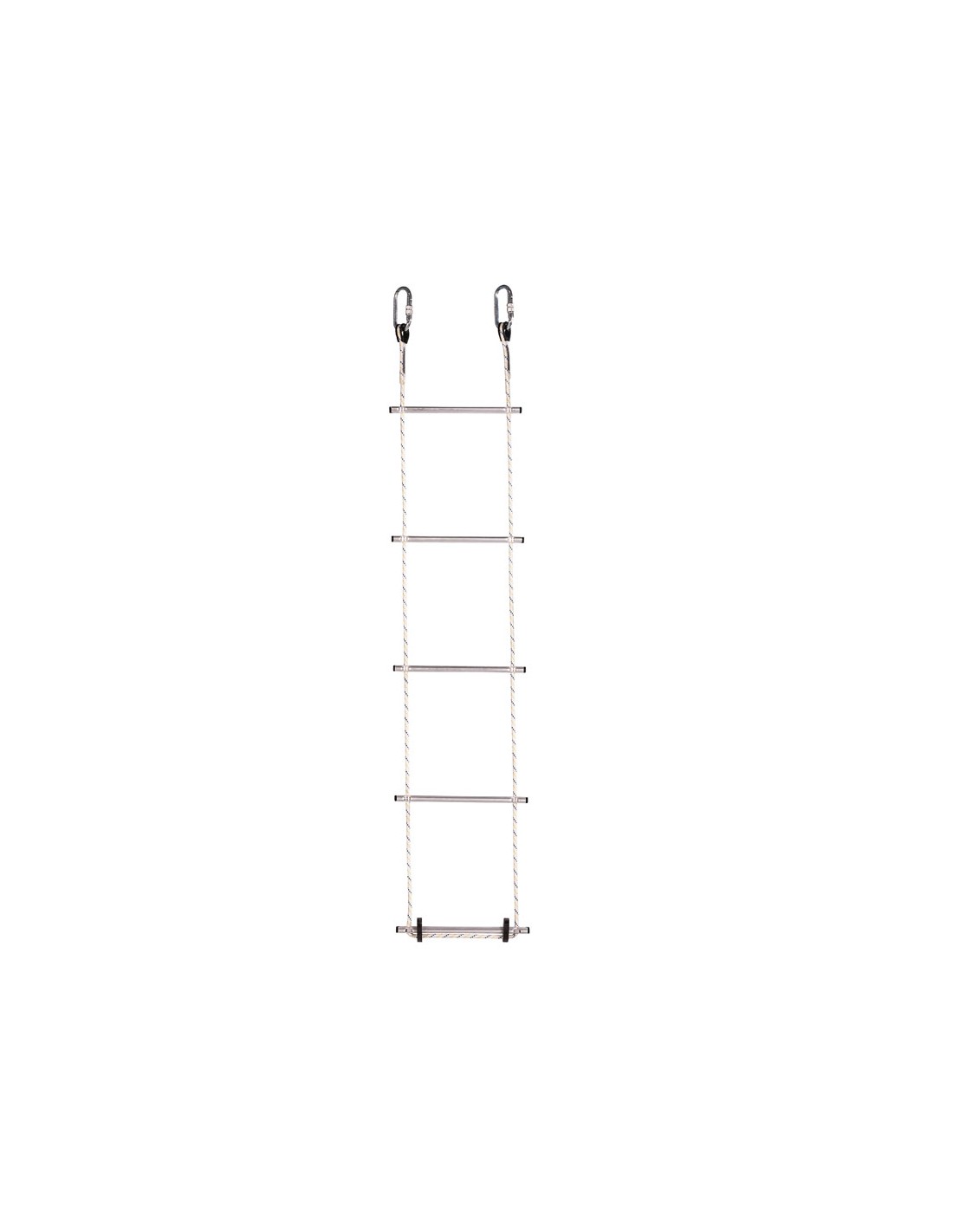 Parallel polyamide ropes and aluminium rungs with staples: stability, durability and easy transport (120 kg load).