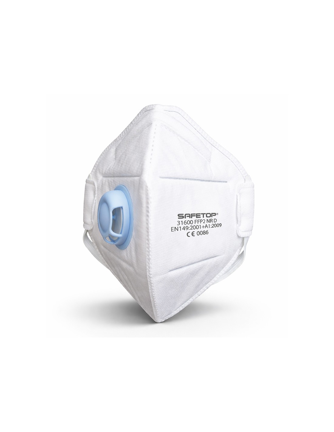 Vertical folding design, nose foam and very soft polypropylene for a comfortable fit; metal-free valve for environments with metal control.