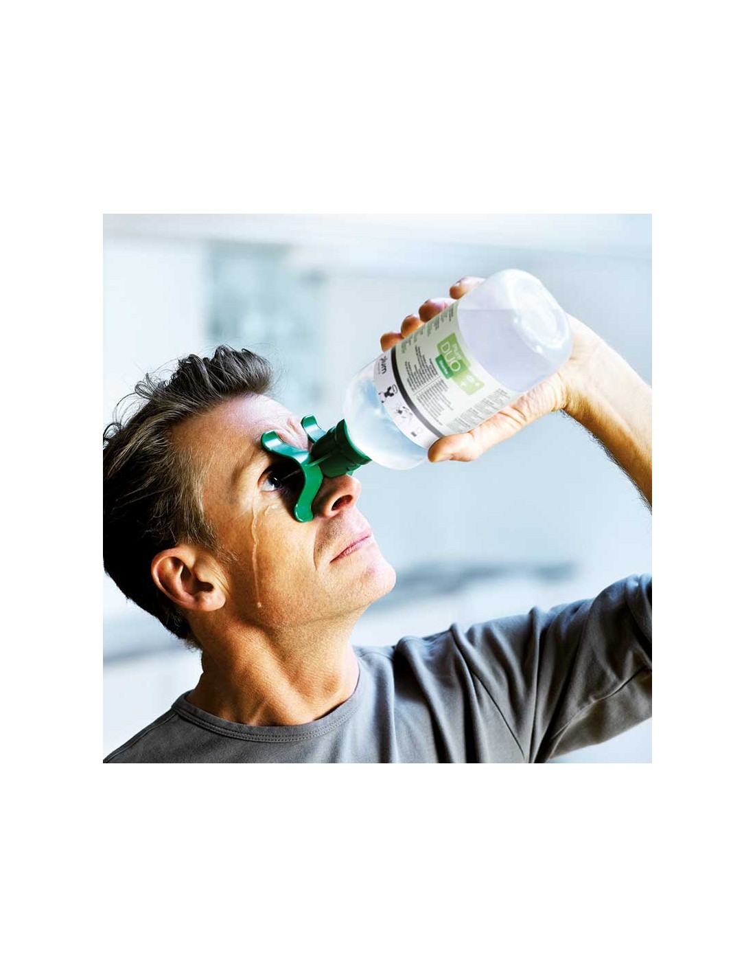 The 500 ml PLUM-DUO BOTTLE offers an immediate, safe and effective response to eye incidents. Its sterile 0.9% sodium chloride solution provides tissue-compatible irrigation, while the Duo design with ergonomic cups keeps the eyelids open and allows washing of both eyes at once, improving rinse speed and coverage.