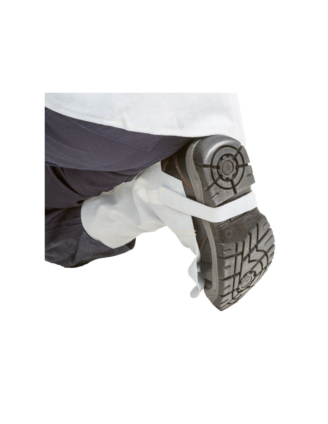 Protects shin and instep against splashes of molten metal, also covering footwear.