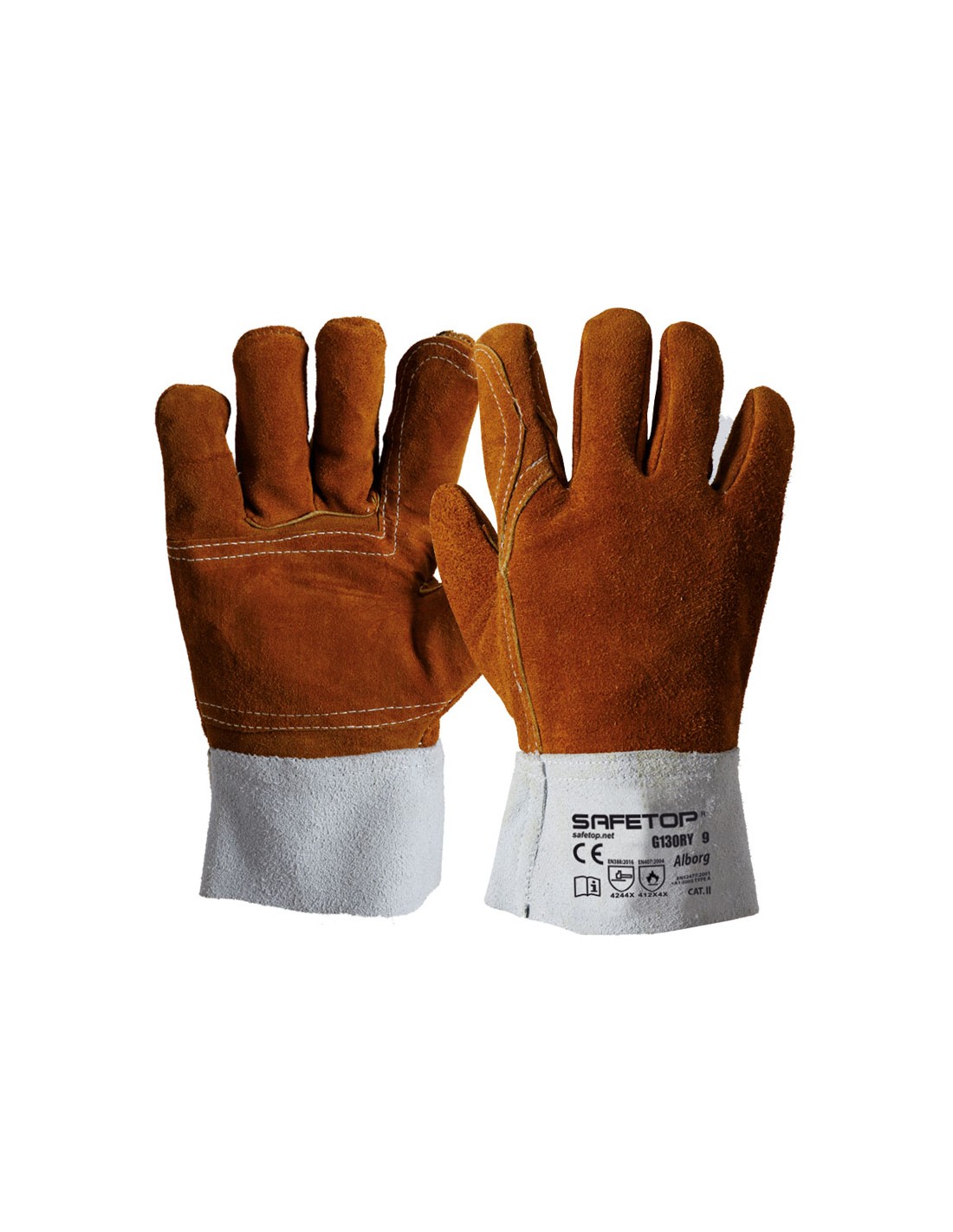 ALBORG is the welding glove designed for those who demand protection, durability and comfort with every ignition of the arc. Its selected split leather with cotton lining reduces fatigue and better manages heat, while the Kevlar® thread seams and double stitching increase wear resistance in demanding environments. The two-piece construction with a small sleeve protects the wrist, and the reinforcements on the palm, thumb and index finger lined with heat-resistant fabric provide additional safety in the areas of greatest friction.