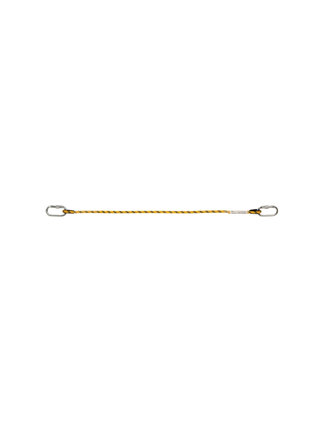 · Corda intrecciata di 12 mm di diametro, con due moschettoni Ref. 80112, a vite, con apertura 18 mm e resistenza 25 Kn.