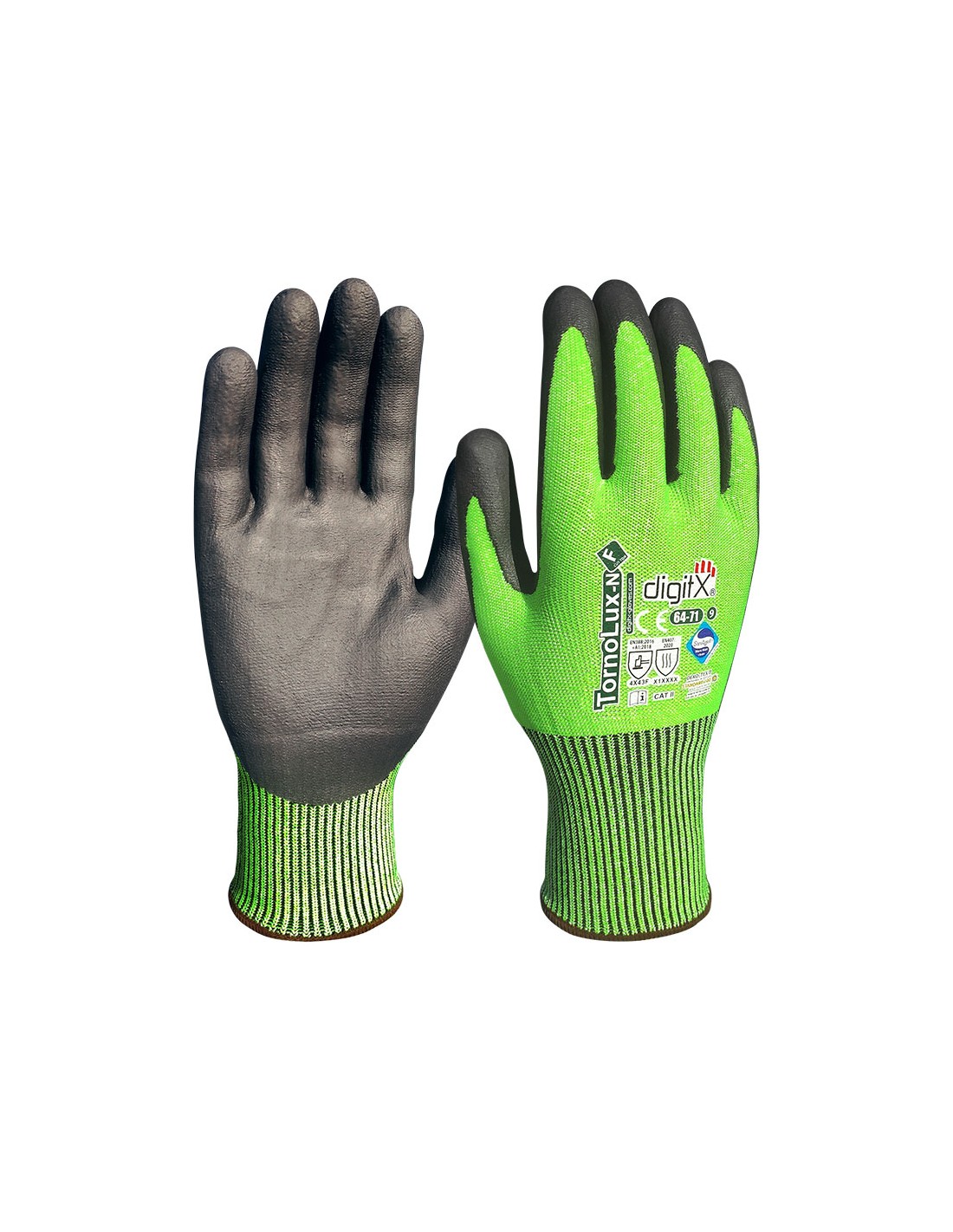 TORNOLUX-N combina il meglio della sicurezza e delle prestazioni: taglio Livello F e certificazione EN407 per resistere fino a 100°C per contatto. Il suo rivestimento in nitrile satinato, con sigillo OekoTex, offre una presa affidabile sia su asciutto che su bagnato e grande resistenza alla penetrazione di oli o liquidi caldi. La struttura morbida, flessibile ed ergonomica riduce la fatica e aumenta la precisione, mentre la sua costruzione ad alta resistenza meccanica lo rende idoneo per lavori critici.
