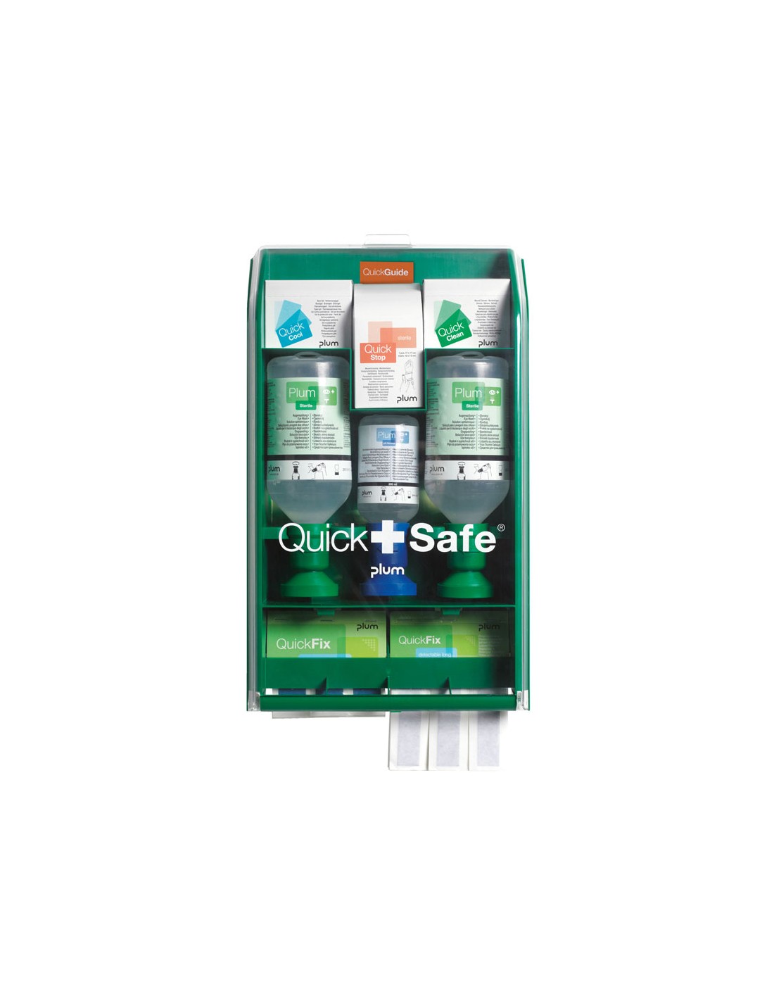 QUICKSAFE è l'armadio di pronto soccorso a parete progettato per fornire una risposta immediata e standardizzata in ambienti esigenti. Integra soluzioni specifiche per ogni incidente: raffreddamento rapido delle ustioni (QuickCool), compressione efficace per emorragie (QuickStop), pulizia asettica (QuickClean) e protezione oculare avanzata con doppia bottiglia Plum, pH Neutral e fiale QuickRinse. Si distingue per la sua qualità ed ergonomia: accesso rapido, consumabili identificati e ricambi disponibili che ottimizzano la manutenzione e il rapporto qualità-prezzo.