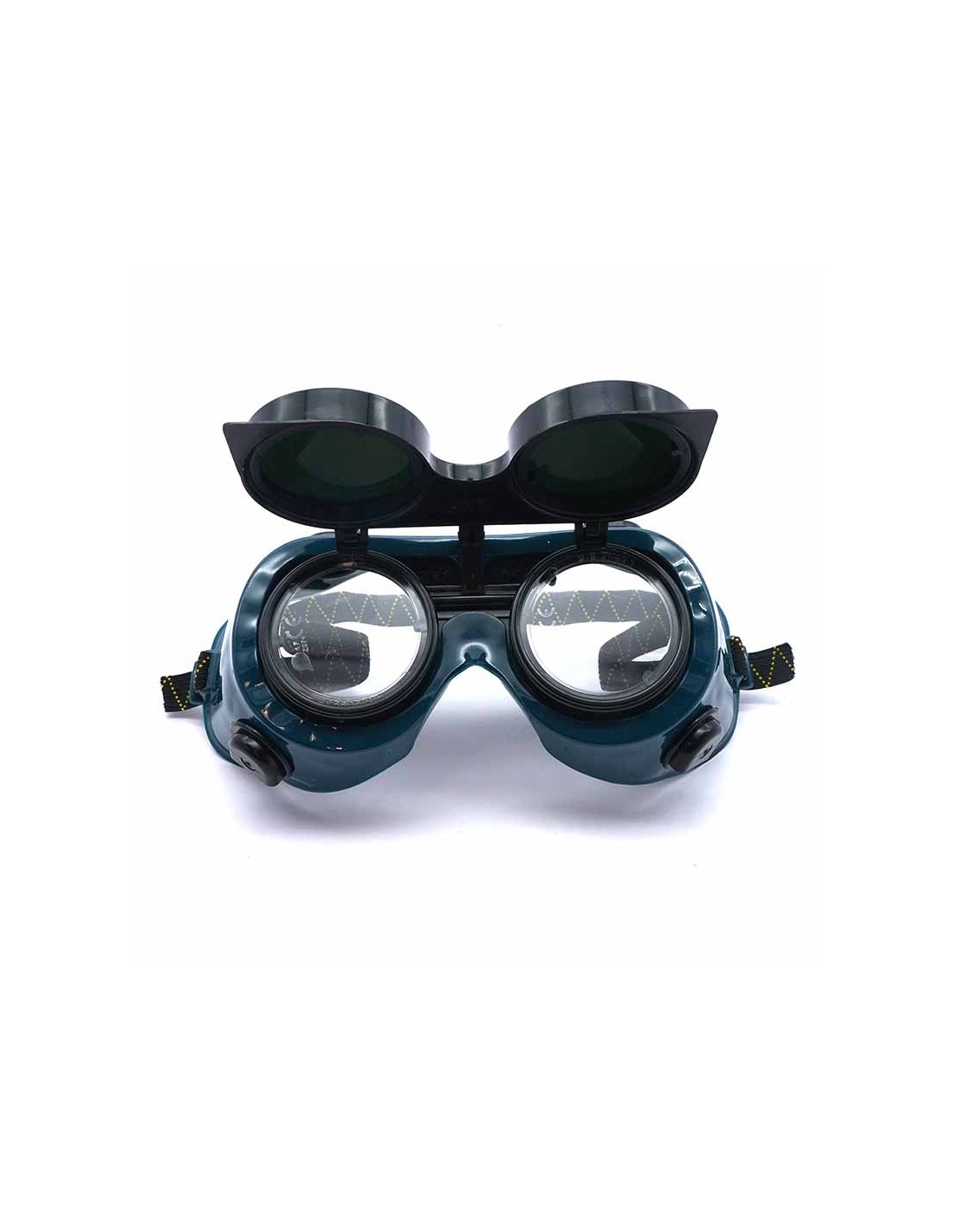 Protezione oculare integrale con visiera ribaltabile e lenti DIN 5 da 50 mm per saldatura leggera e ambienti con particelle.