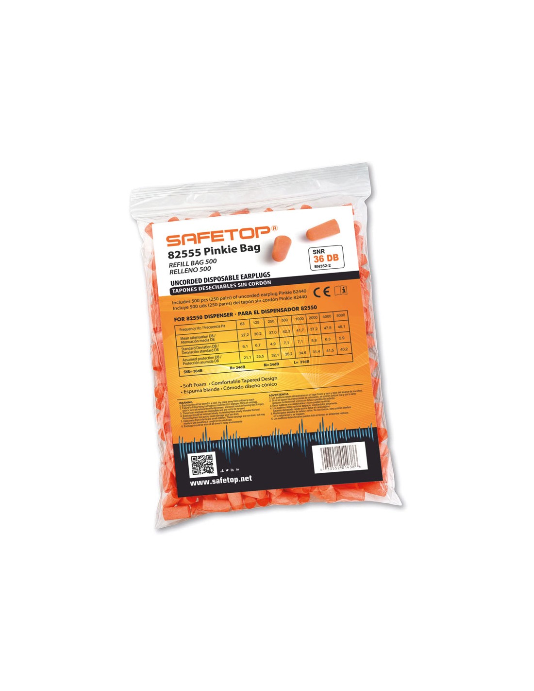 Ottimizza il rifornimento di protezione uditiva con una borsa di 250 paia compatibile con il distributore 82550. Il suo livello di attenuazione SNR 36 offre una protezione affidabile nel rumore industriale, mantenendo il comfort dell'utente durante lunghe giornate lavorative.