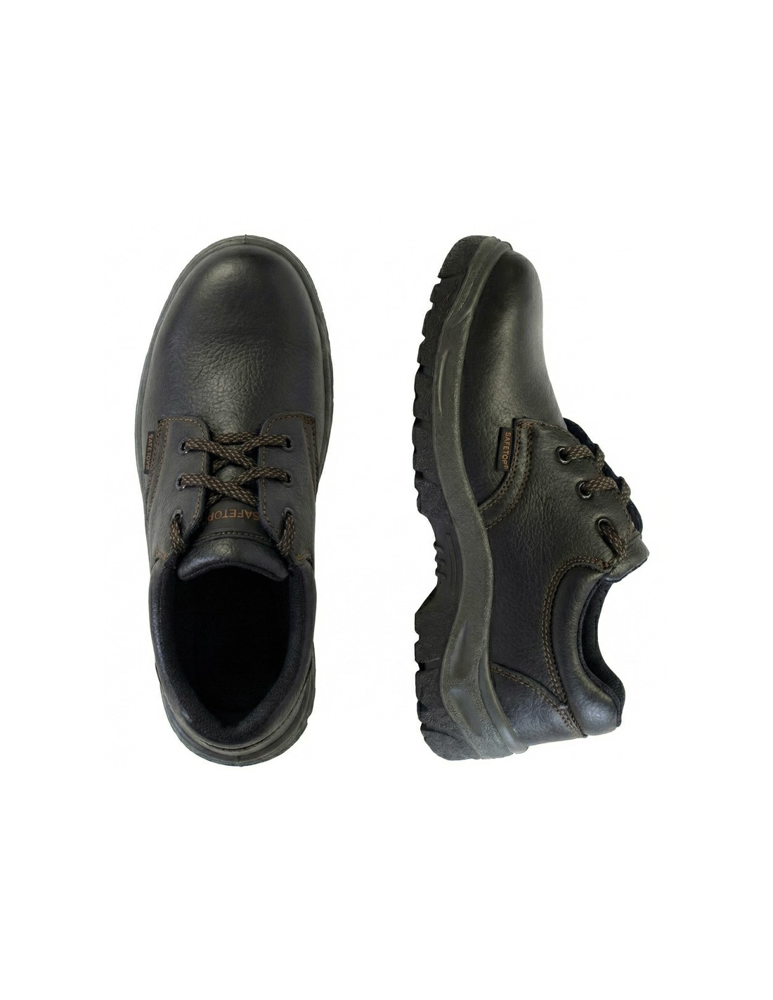 DUMIO é a escolha inteligente para aqueles que exigem segurança S1P sem abrir mão do conforto diário. Sua construção em couro bovino preto oferece resistência e uma estética profissional, enquanto a biqueira de aço (200J) e a entressola antiperfuração (1100N, P) elevam o nível de proteção em ambientes exigentes. A tecnologia de sola de poliuretano injetado de dupla densidade oferece uma passada estável, leve e com excelente amortecimento, reforçada por um design antiderrapante SRC para uma aderência superior em superfícies comprometidas. O forro de malha de poliéster e a língua acolchoada melhoram a ventilação e o conforto, reduzindo a fadiga em jornadas prolongadas. Além disso, seu desempenho frente a hidrocarbonetos, óleos e álcalis (FO) e sua propriedade antiestática (A) o tornam um calçado versátil e confiável. Com uma excelente relação custo-benefício, DUMIO combina qualidade, tecnologia e ergonomia para entregar segurança consistente passo a passo.