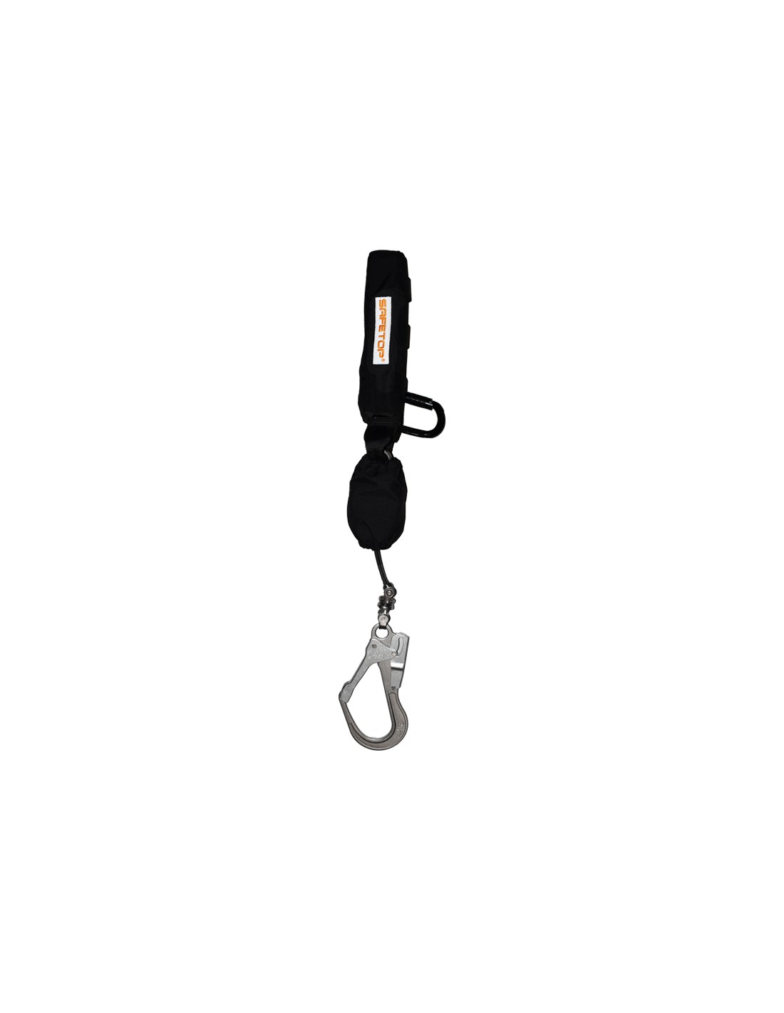 Aramida de alta resistência, mosquetão giratório e ganchos de alumínio; certificado EN 360 e adequado até 150 kg.