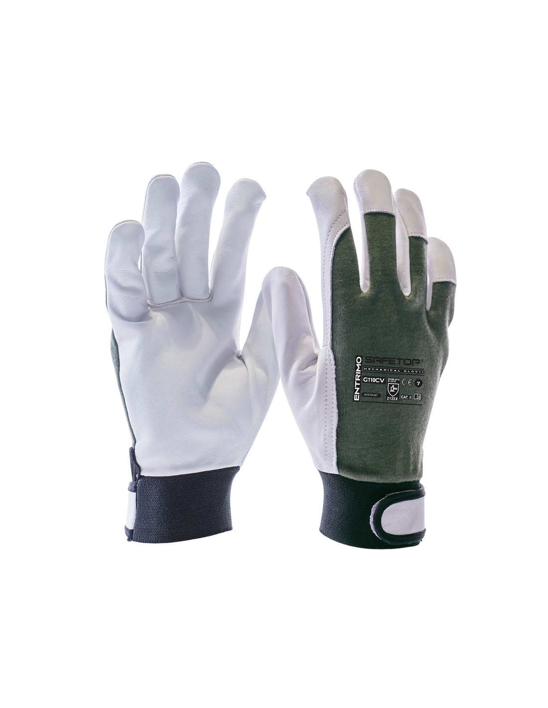 ENTRIMO, Luva couro - algodão verde fecho velcro