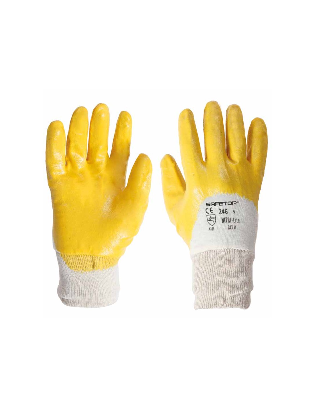 · Luva de nitrilo com suporte de algodão interlock, revestida por imersão com nitrilo leve, até 3/4 do dorso.