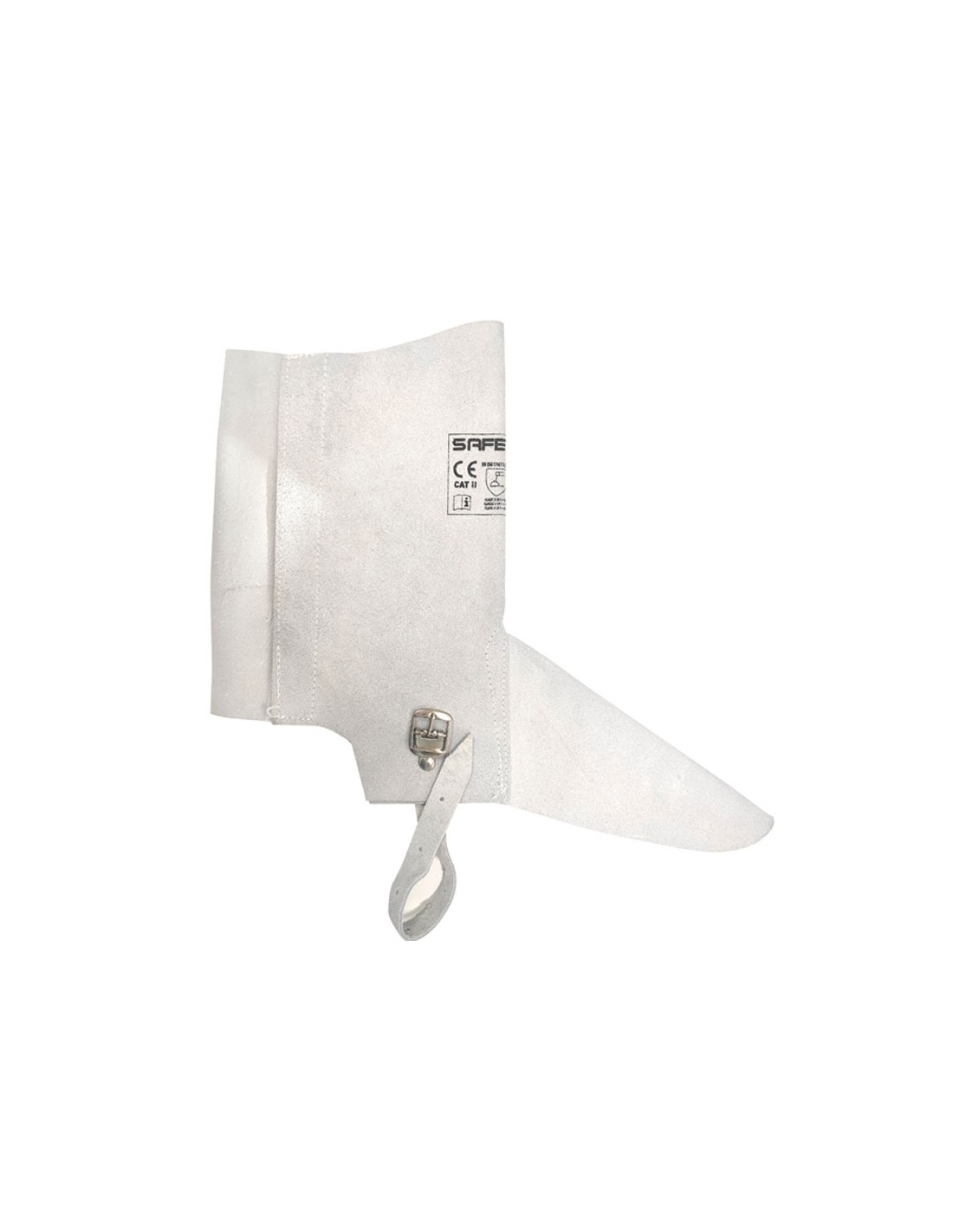 Protege canela e peito do pé contra salpicos de metal fundido, cobrindo também o calçado.