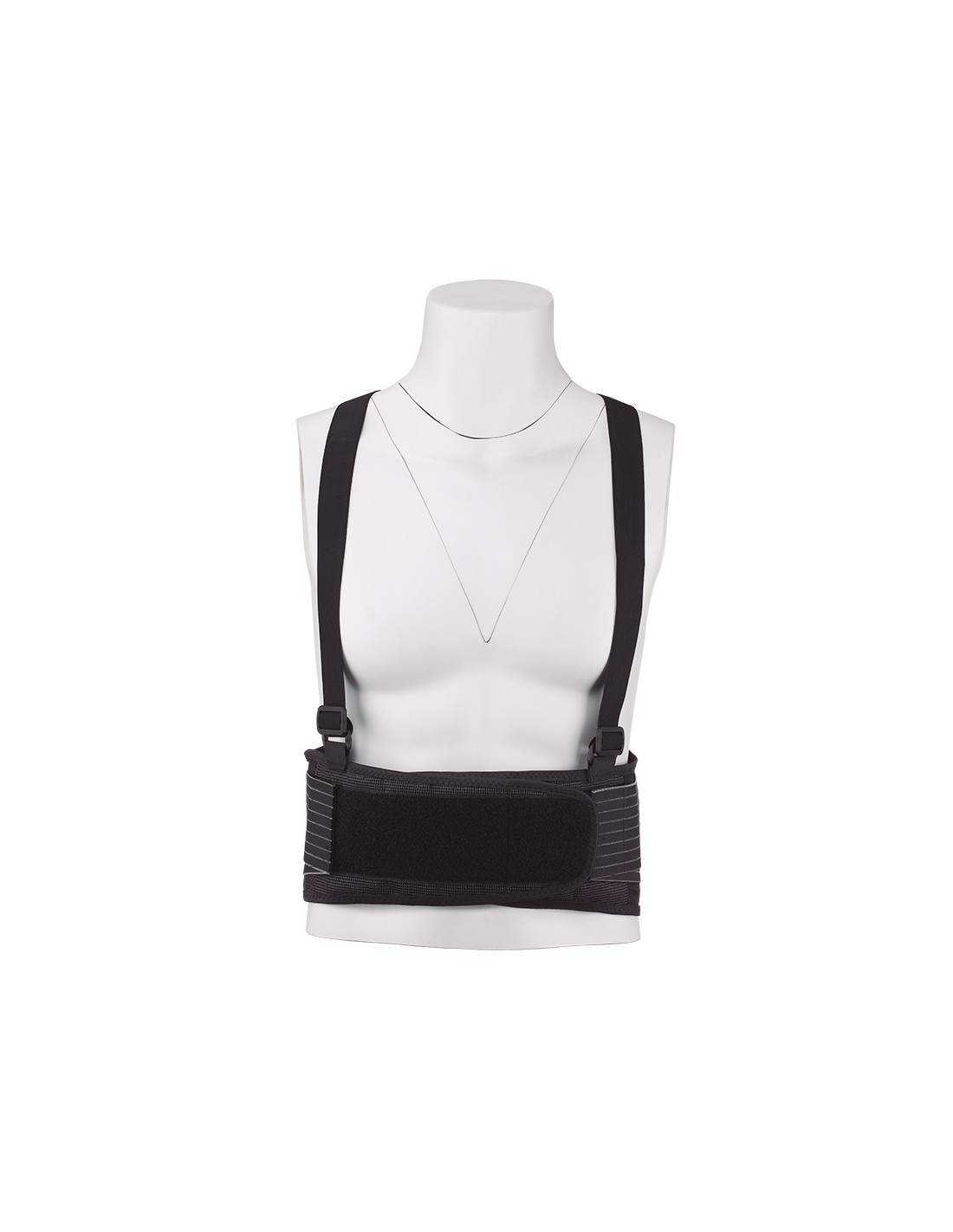 Förhindrar ländryggsskador och stabiliserar den nedre delen tack vare sin korsade design och dubbla justerbara band.