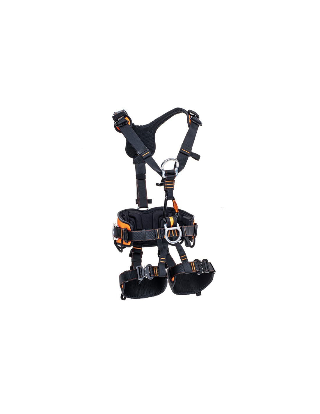 · Tillverkad i polyesterband med metallbeslag i legerat stål och aluminium, inkorporerar 5 fästpunkter certifierade enligt gällande europeiska standarder, vilket erbjuder en hög nivå av säkerhet, ergonomi och komfort för arbete på höjd.