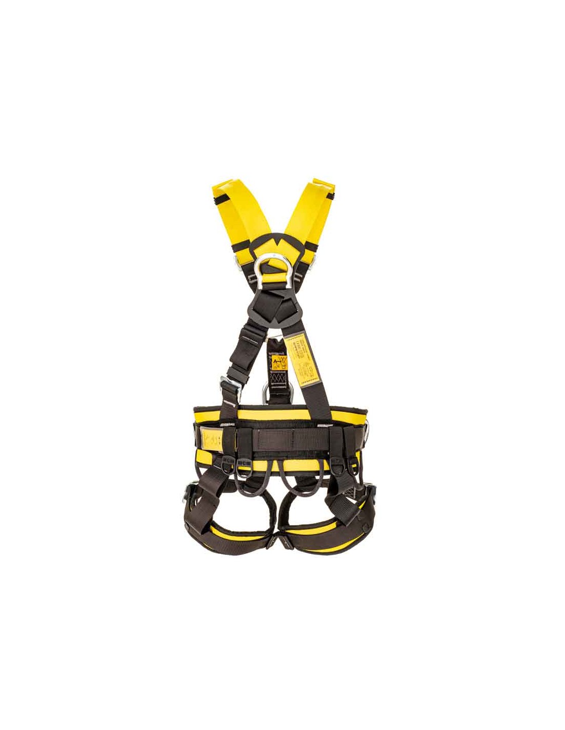 Dess 5-punktsdesign och kapacitet på 140 kg, med vadderat bälte och flera förankringar, maximerar kontroll och ergonomi på höjden.