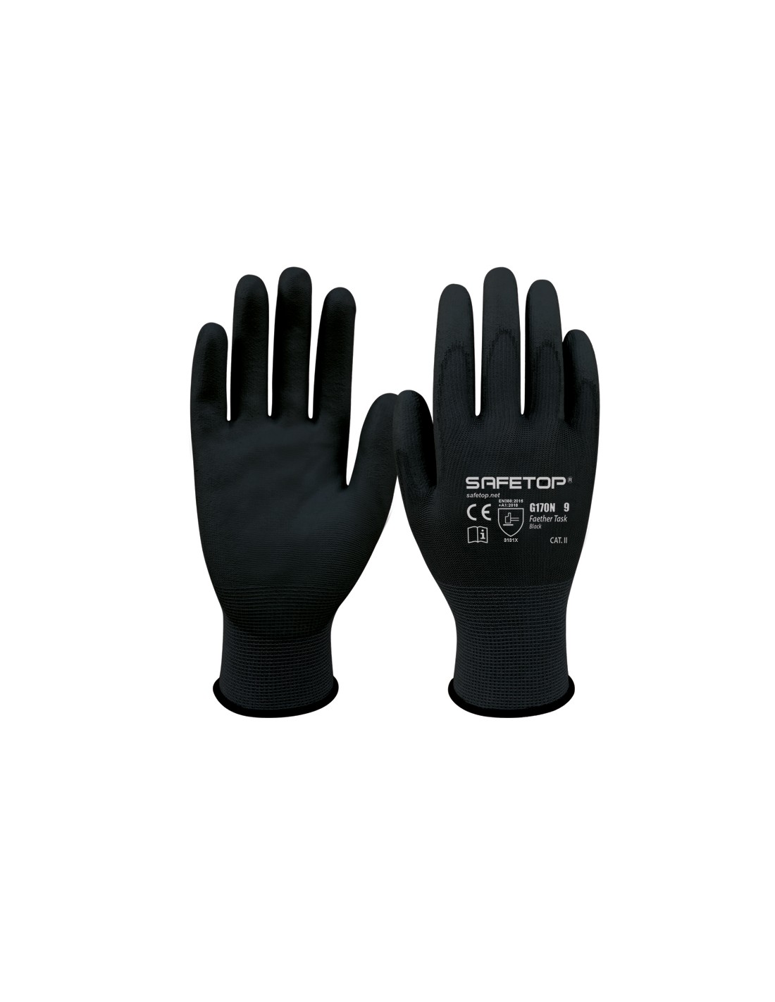 FEATHER TASK är utformad för dem som behöver precision och komfort under hela arbetsdagen. Dess polyuretanöverdrag på polyesterbas, utan sömmar, erbjuder en homogen yta som garanterar kontrollerat grepp och en fin känsla, samtidigt som maximal fingerfärdighet (nivå 5) bibehålls. Det elastiska tyget anpassar sig till handens anatomi, medan den elastiska manschetten förbättrar passformen och förhindrar intrång av partiklar. Det är det smarta valet för operationer där kvalitet, ergonomi och kostnadseffektivitet gör skillnad. Användningsförslag: hantering av komponenter, lätt mekanik, monteringsarbete och logistiska operationer där känslighet och kontroll krävs. Fin känsla, total kontroll.