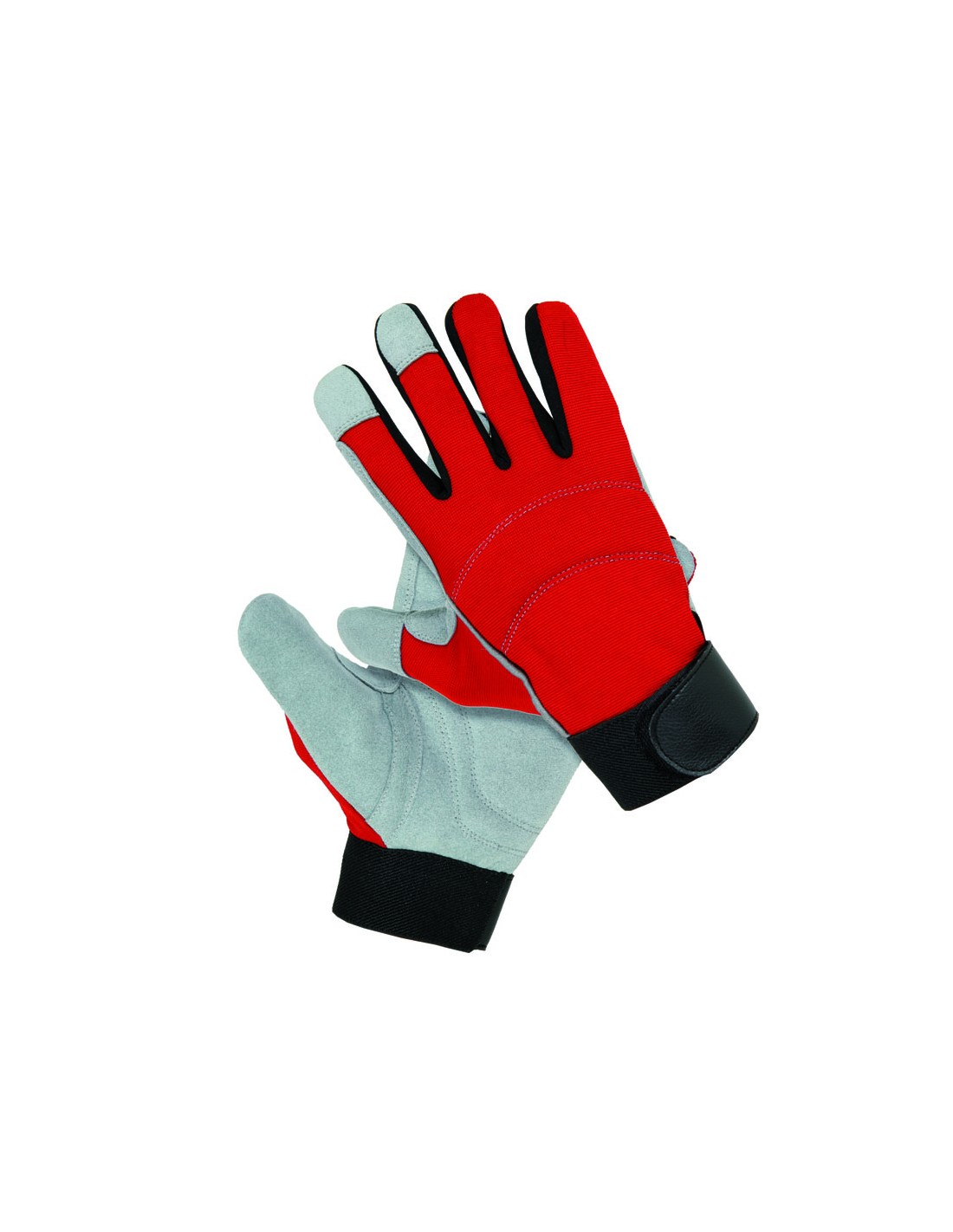 DETROIT är handsken som kombinerar prestanda och komfort för mekaniska jobb och hantering. Handflatan i syntetiskt läder ger bra grepp och slitstyrka, medan baksidan av elastiskt tyg förbättrar ventilationen och anpassningen i en storlek. Manschetten med kardborreband säkerställer en fast passform, vilket minskar rörelser och trötthet. Viktiga förstärkningar mellan tumme och pekfinger samt vid knogarna skyddar vid repetitiva uppgifter, och tryckavlastande kuddar dämpar stötar och lätta vibrationer. Dubbel sömnad förlänger livslängden, vilket maximerar förhållandet mellan kvalitet och pris. Perfekt för verkstäder, logistik och trädgårdsarbete, är det en mångsidig lösning för proffs som söker ergonomi, kvalitet och effektivitet i en enda handske.