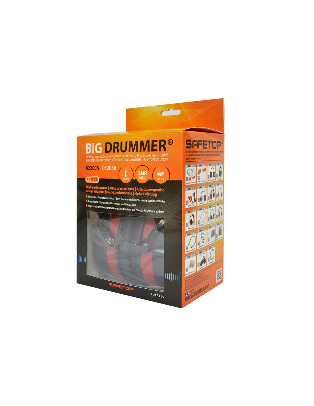 BIG DRUMMER är designad för dem som arbetar i extrema bullermiljöer och söker pålitligt skydd utan att kompromissa med komfort. Dess dielektriska teknologi, fri från metalldelar, ger ytterligare säkerhet i närheten av elektriska installationer, medan det vadderade bandet och de ultra mjuka PVC-kuddarna säkerställer bekväm användning under långa perioder.