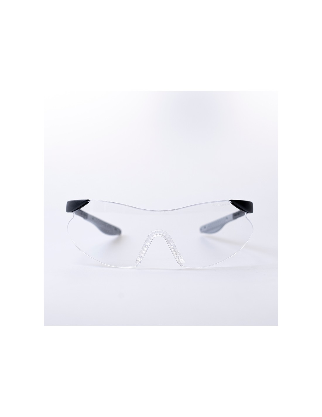 Klar och omslutande ögonskydd för långa arbetspass, tack vare dess sportiga design med 2,1 mm polykarbonat och UV-filter.