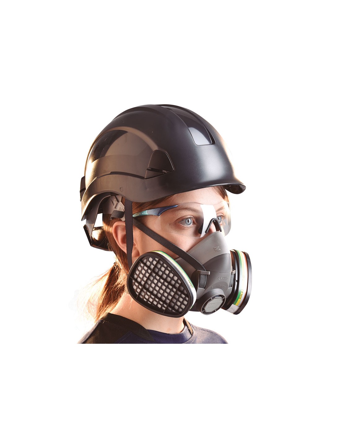 SE MI MASK SAFETOP Serie 4600 är designad för yrkesverksamma som kräver pålitligt skydd och överlägsen komfort. Dess kropp i TPR hypoallergeniskt, mycket mjukt för huden, minskar irritation vid långvarig användning, samtidigt som den justerbara 4-punktsselen garanterar en stabil och ergonomisk tätning. Den centrala förstärkningen ger robusthet och hållbarhet, samtidigt som den bibehåller ett utmärkt synfält och kompatibilitet med svetsskärmar eller integrerade glasögon. Den centrala utandningsventilen förbättrar andningen och minimerar värme och fuktansamling. Användningsförslag: välj klass 1 filter anpassade till risken (ingår inte), kontrollera passformen innan användning och utför regelbunden rengöring tack vare dess demonterbara och tvättbara design. Lätt och balanserad hjälper den dig att prestera mer med mindre trötthet. Andas skydd, känn komfort.