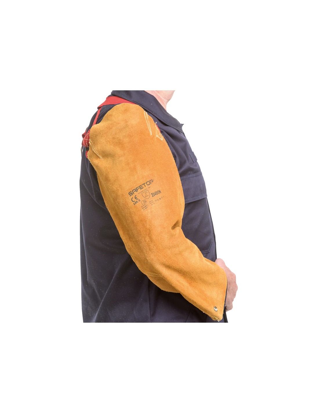 Överlägset skydd för svetsaren: läderärmar av mycket hög kvalitet som täcker från axel till handled och motstår stänk.