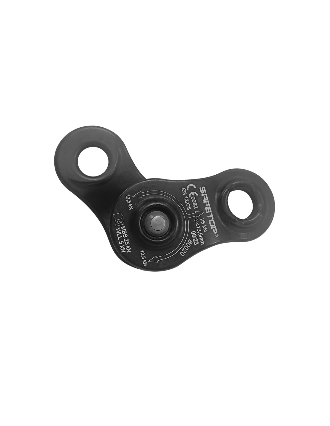 Smidd aluminium och axel av rostfritt stål med MBS 25 kN och faktor 5:1 för maximal tillförlitlighet med rep <13,5 mm.